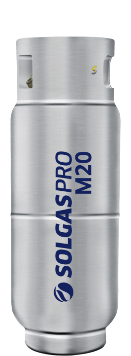 Cilindro de gas licuado de petróleo (GLP) con capacidad de 20 kg dirigido a empresas industriales y comerciales que utilicen montacargas en sus operaciones.